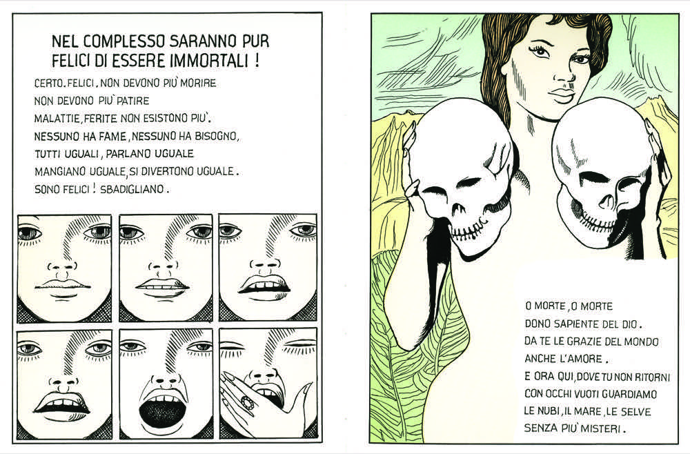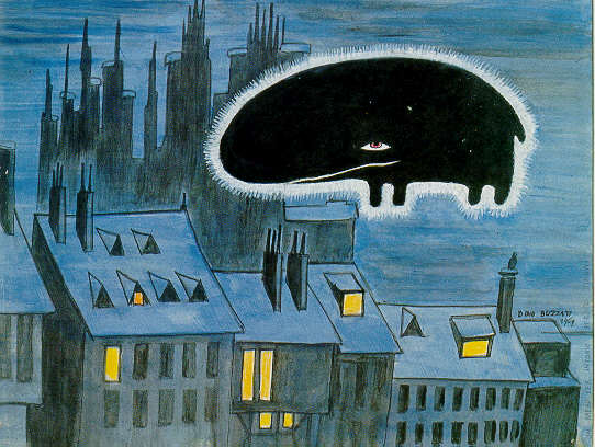 Dino Buzzati (1906 – 1972) on the other hand, writing from the newsroom of the Corriere della Sera, traced similar lines of memory through narrative rather than design. His Milan is an everyday labyrinth of offices, trams, and corridors, where the ordinary suddenly slides into the metaphysical like a De Chirico painting. In Il deserto dei Tartari (1940), the waiting fortress mirrors the routines of the modern city: a structure of expectation, repetition, and loss. Later, in Poema a fumetti (1969), Buzzati turned to the myth of Orpheus to portray a Milan underworld both literal and symbolic, a descent into the invisible city beneath the visible one.