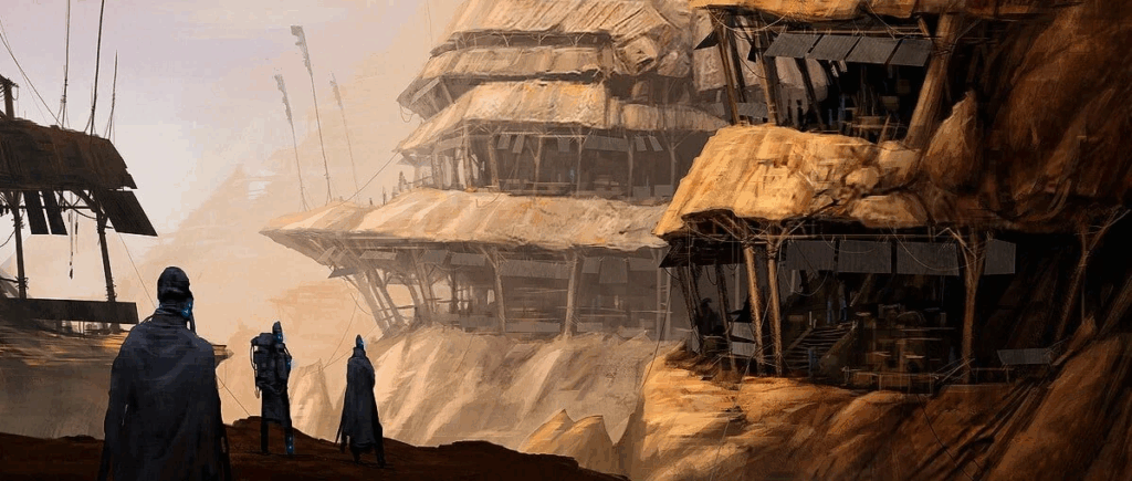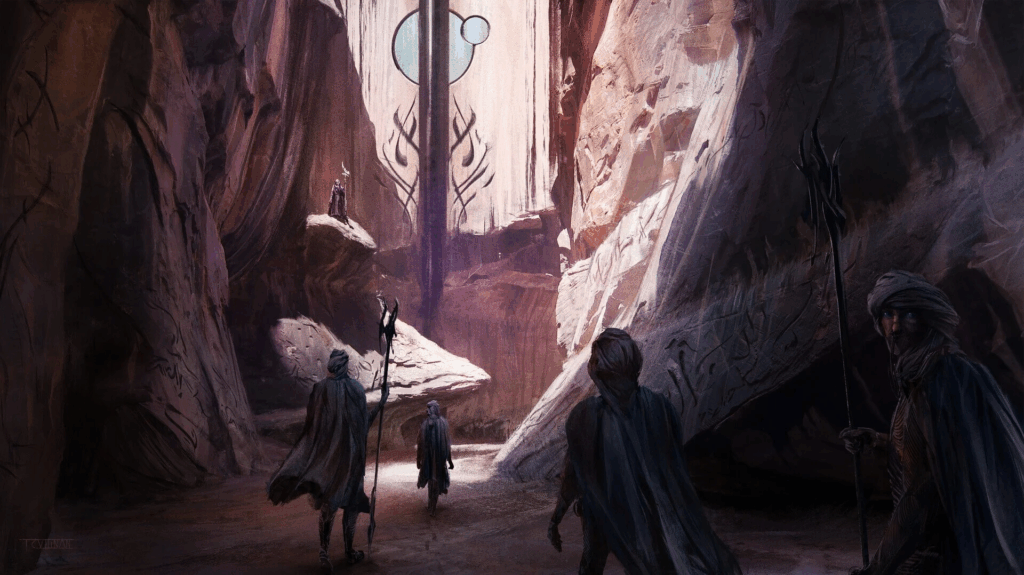 To survive in the desert, the Fremen had to turn survival itself into culture and their very gesture — from how they drank to how they buried their dead — became a ritual of preservation. Their architecture is carved into stone, hidden from the sun, their settlements designed for endurance.