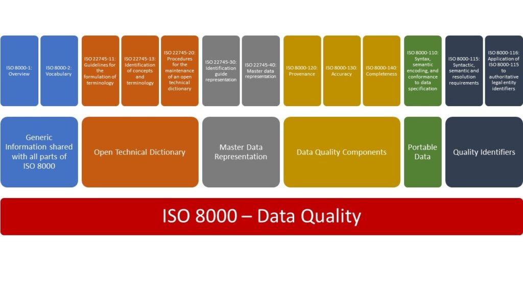 “The ISO 8000 series provides frameworks for improving data quality for specific kinds of data. The series defines which characteristics of data are relevant to data quality, specifies requirements applicable to those characteristics, and provides guidelines for improving data quality.”