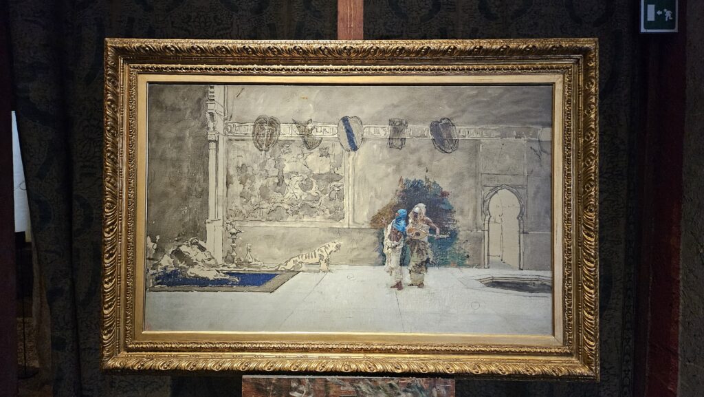 Fortuny treated art as a process of investigation and his paintings, often overshadowed by his work in other fields, reveal this clearly: they are mostly studies, of light and atmosphere and tone, rather than finished works. He was fascinated by how light behaves on surfaces, how it can be diffused, reflected, sculpted. This fascination would later find fuller expression in theatre and textile design, where light became both a material and a subject.