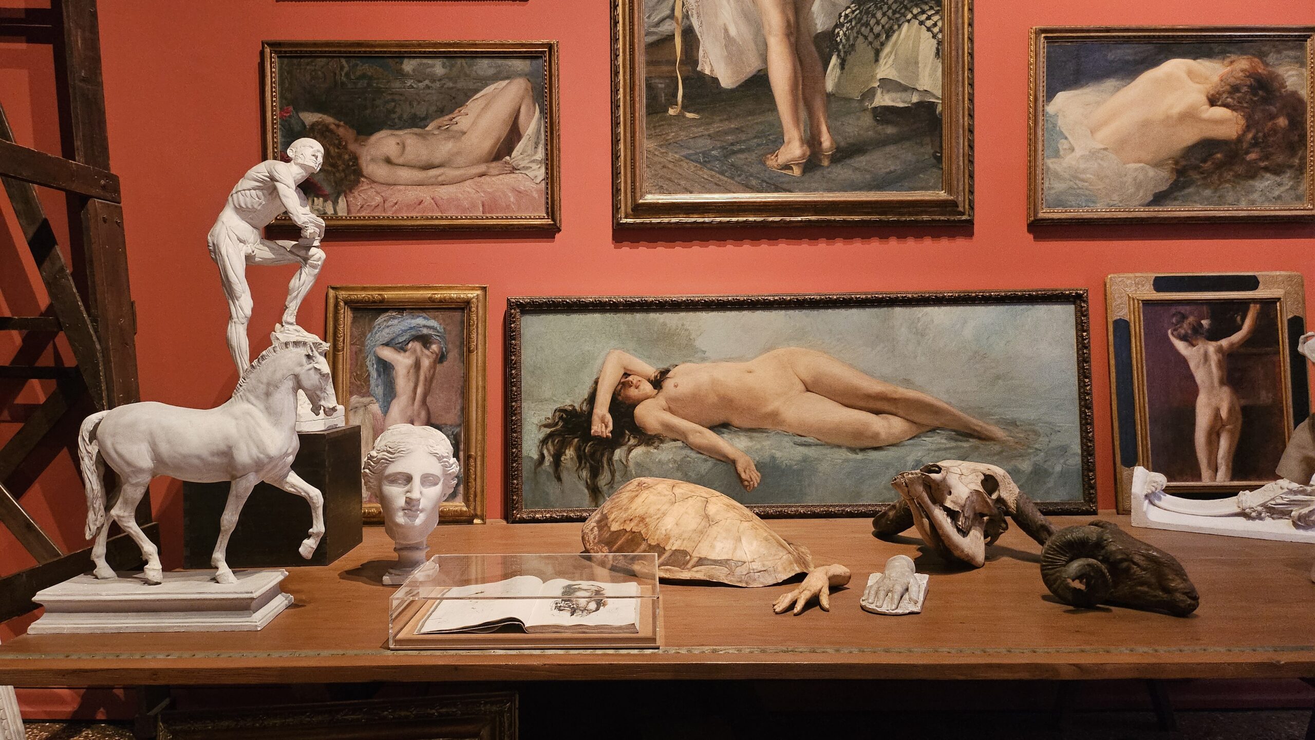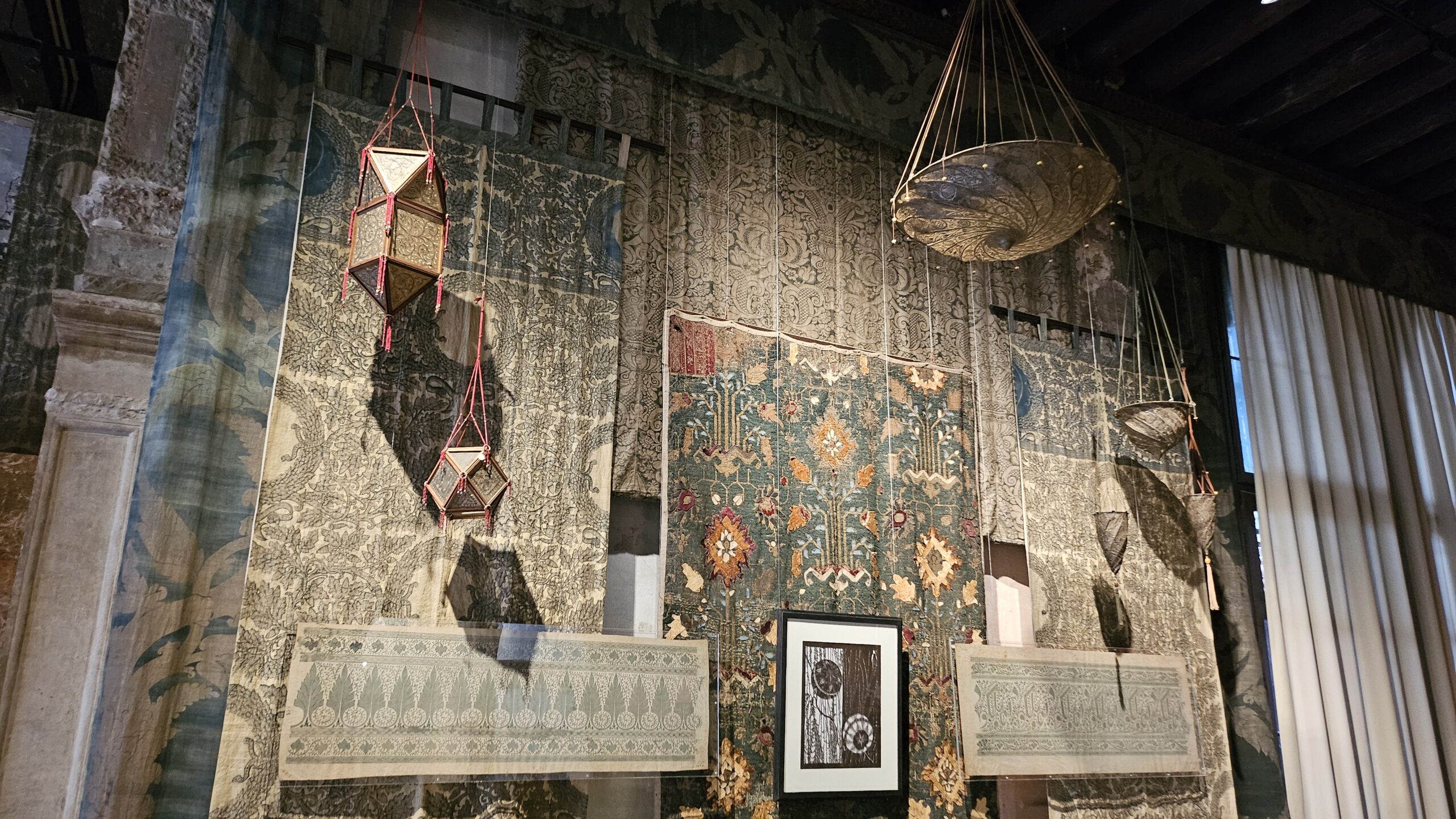 It was built in the late Gothic period and reflects the complex stratification typical of Venice. It was first associated with the Pesaro family, a prominent Venetian patrician lineage since the early 13th century whose members served the Republic as admirals, magistrates, high officials and patrons of the arts, managing to be Doge for like one year at a certain point. In the 19th century, it was known as the Orfei, a venue for concerts and musical performances. When Fortuny acquired and transformed the palace at the end of the century, he kept the spaces as hybrid spaces where medieval tapestries coexisted with photographic equipment, stage models with ancient sculptures, bolts of fabric with lighting prototypes. The palace still has this vibe today.