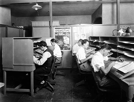 In the movie industry, character design offers a clear example: what could have been a fluid process of exploration was fragmented across concept artists, modellers, riggers, animators, texture artists, lighting specialists, and colourists. Walt Disney had a crucial role in inventing this fragmentation, and that’s why his studios resembled factories, with gender division mirroring the perceived complexity, nature and worth of the task.