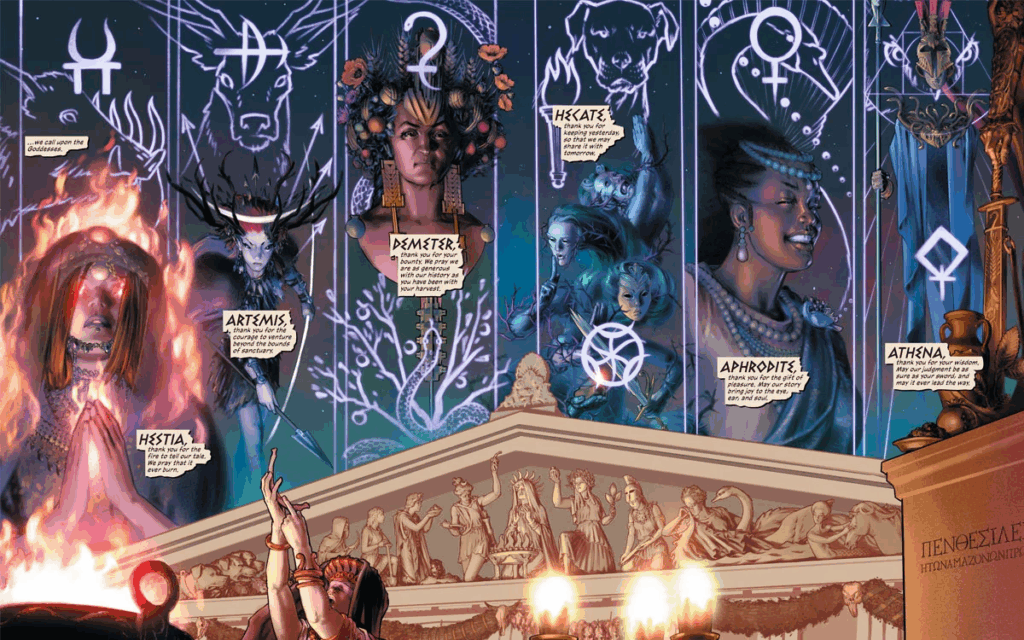 This year, I tried a couple of titles to emerge from the block: the first one is Wonder Woman Historia, written by Kelly Sue DeConnick and splendidly illustrated by an array of incredible artists including Nicola Scott, and it traces back Diana’s birth through the very birth of the Amazons. It’s also remarkable how it manages to be truly feminist without being tacky, and the portrayal of Hera is absolutely glorious.